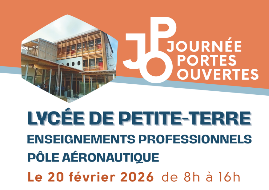 Le Lycée de Petite-Terre organise sa Journée Portes Ouvertes dédiée aux enseignements professionnels et à son pôle aéronautique le 20 février 2026, de 8h à 16h. Cette journée sera consacrée aux élèves de troisième des collèges de Labattoir (le (…)