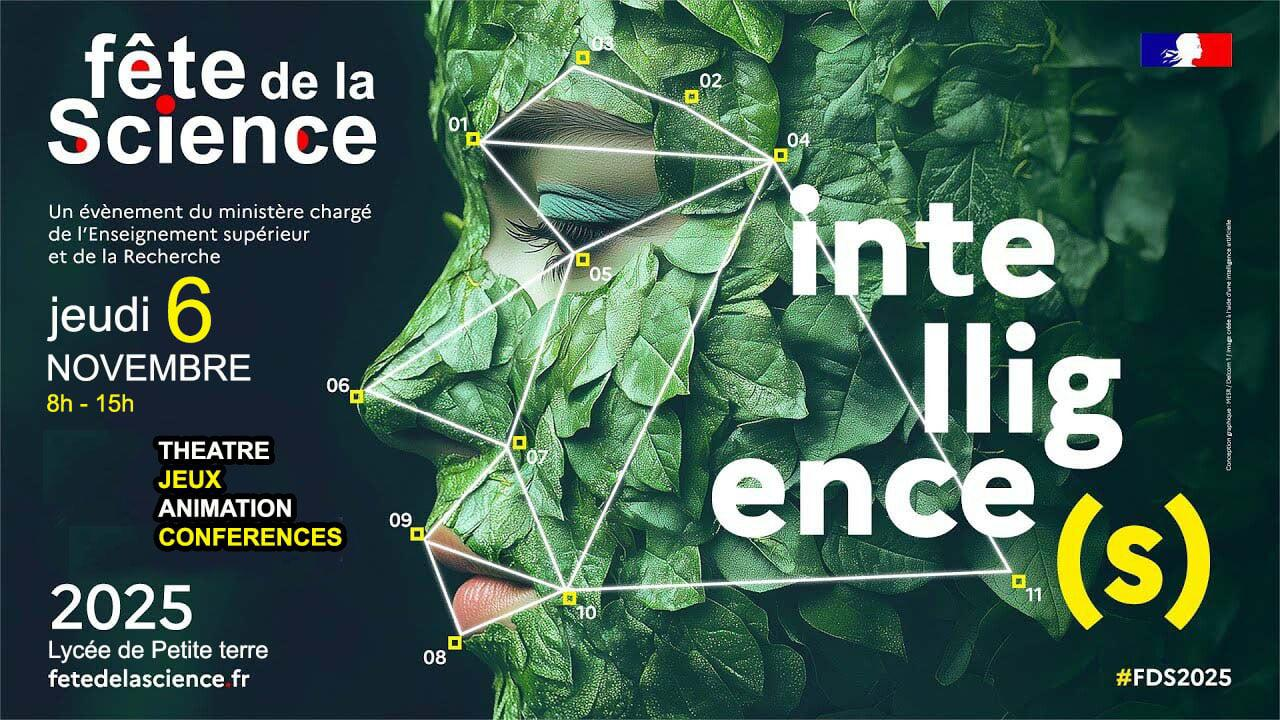 La fête de la science du lycée de Petite-Terre aura lieu le jeudi 6 novembre de 8 h 00 à 16 h 00. Le thème de cette année, ce sont « Les intelligences ». Lors de cette occasion, il y aura des stands animés par nos élèves, des jeux, des animations, ainsi que des intervenants externes (CHM, Jua school, météo France, un neuropsychologue, un maître chien, etc.)