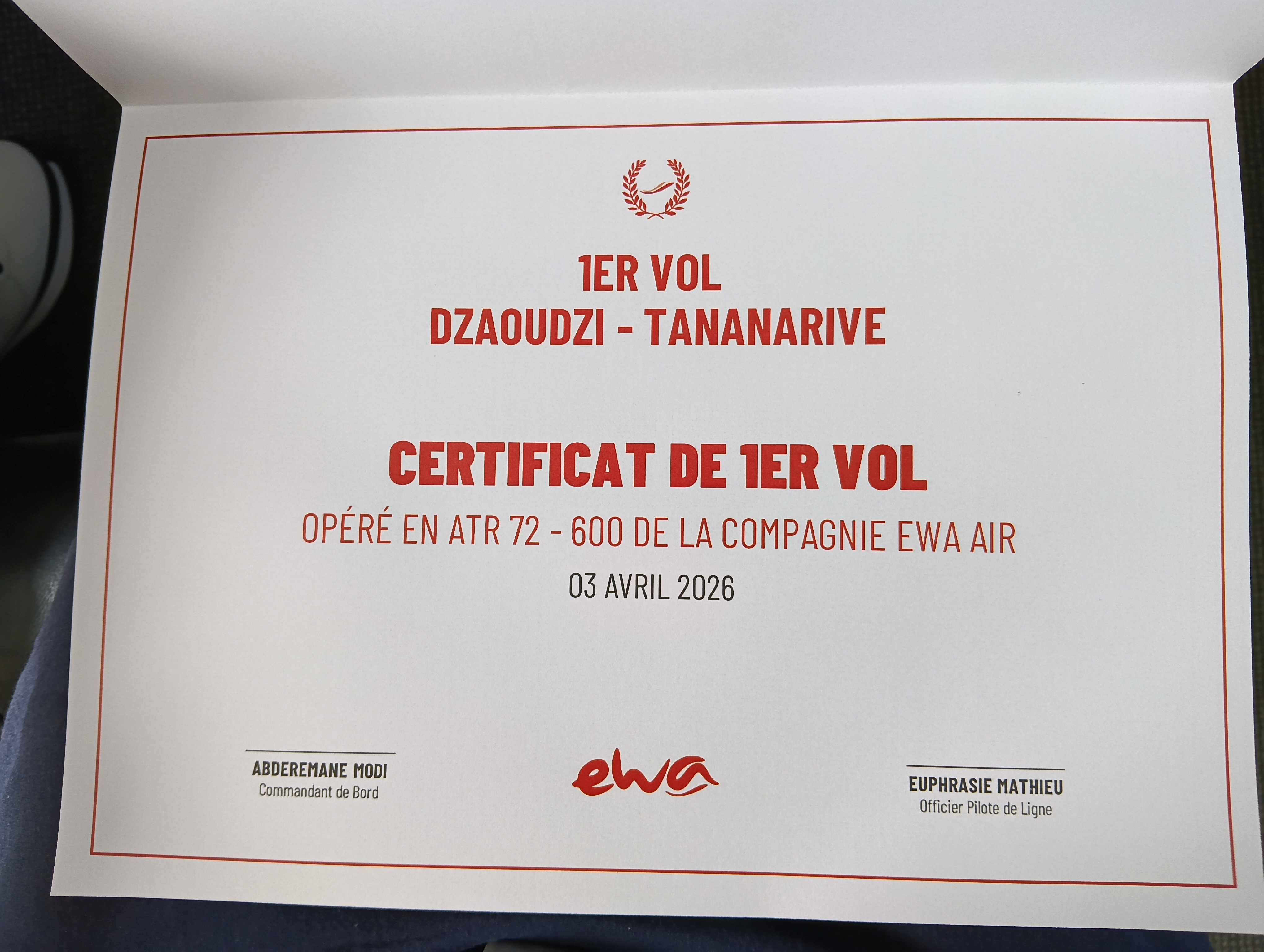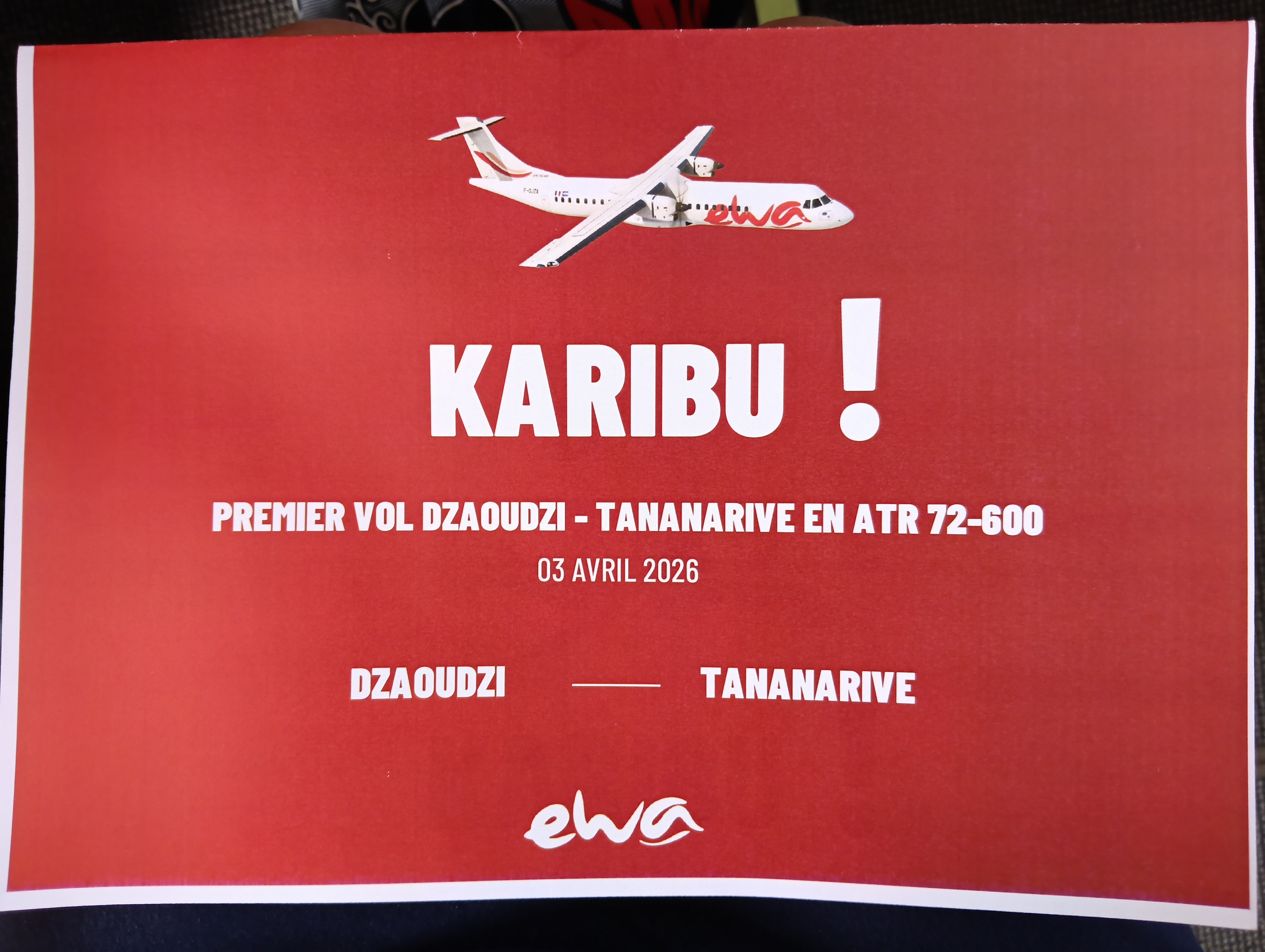 Voici quelques photos de ce vol inaugural avec la compagnie EWA qui nous a gâté. La mise en service de ce nouveau vol chaque vendredi est une étape importante pour les liens économiques et les relations entre Mayotte et Madagascar.