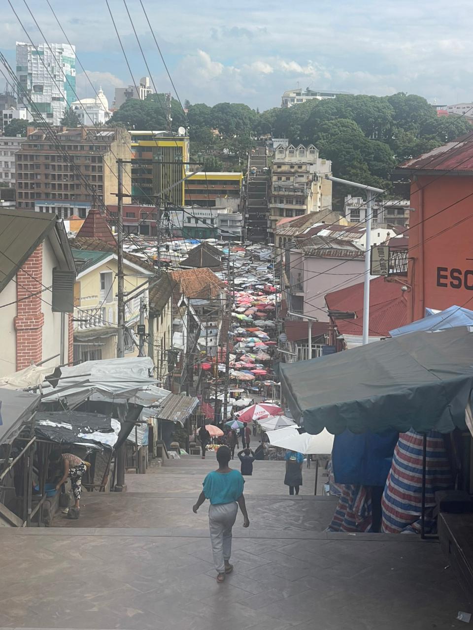 L’avenue de l’Indépendance avec la mairie de Tananarive, les grands centres commerciaux et la Haute-Ville que nous avons gravi à pied dans les rues dallées jusqu’au Palais de la Reine et la vue imprenable sur Antananarivo.
