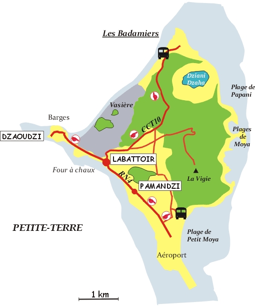 Les Badamiers : suivre, ou rejoindre, la route CCT10, parfois étroite,